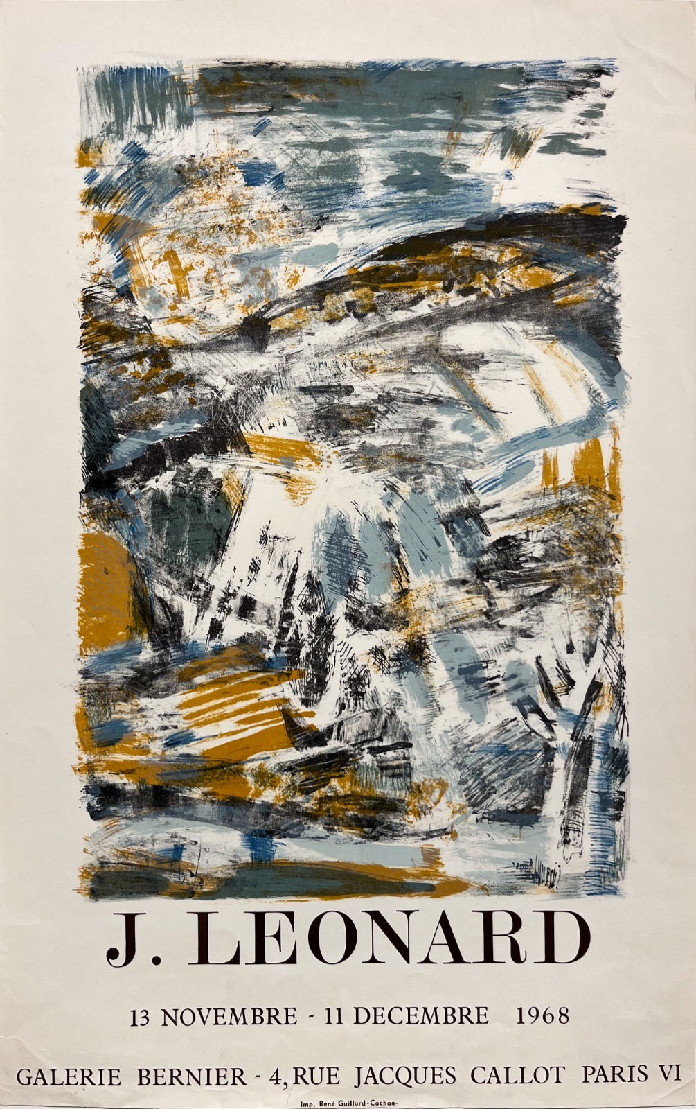 J. Leonard à la Galerie Bernier – Affiche Expo Litho René Guillard 1968